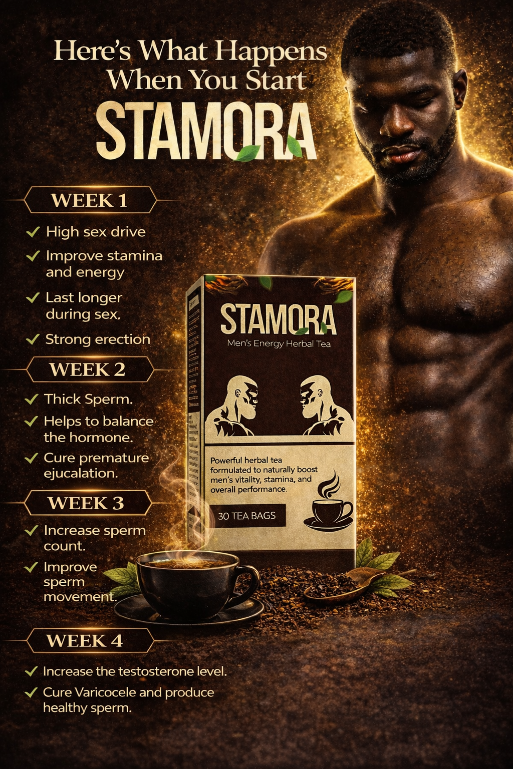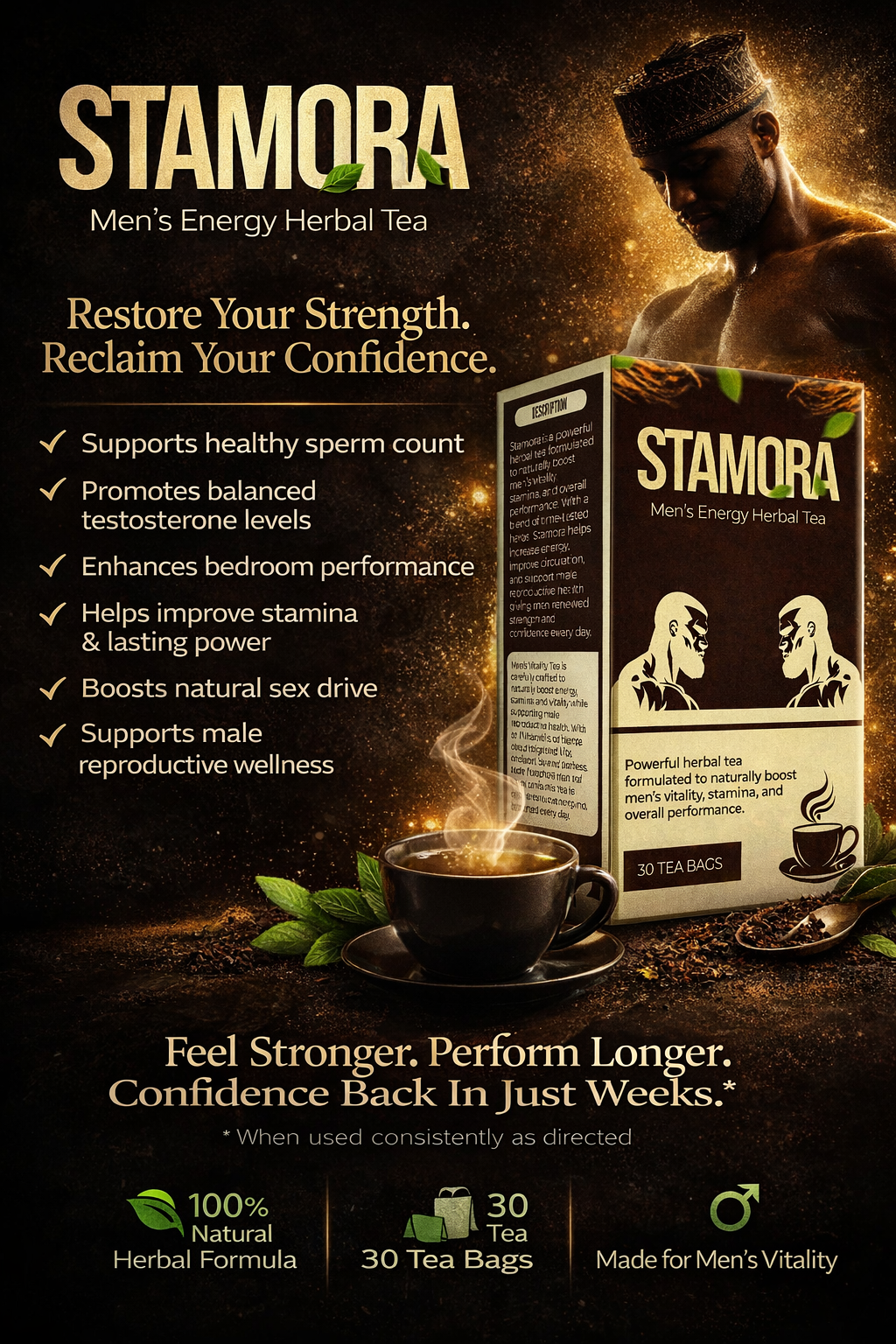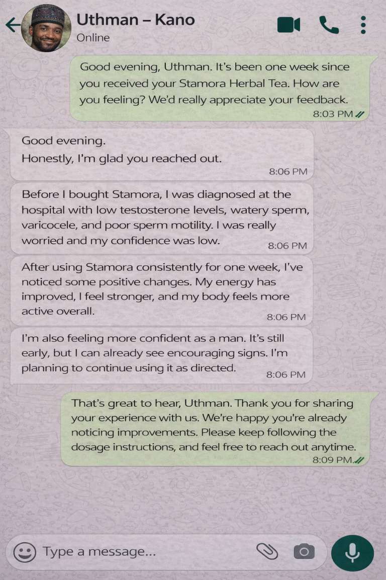 That’s why thousands of Nigerian men have turned to Stamora Men’s Vitality Herbal Tea as part of their wellness routine to support: